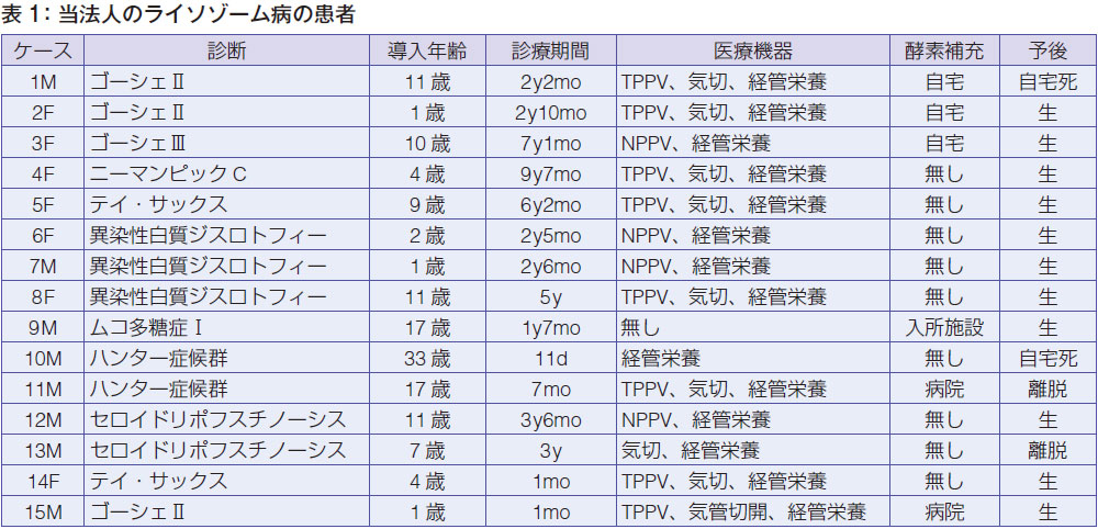 表1 からもわかるように、ライソゾーム病の子たちは医療依存度が非常に高くて、ほとんどが人工呼吸器を使っています。